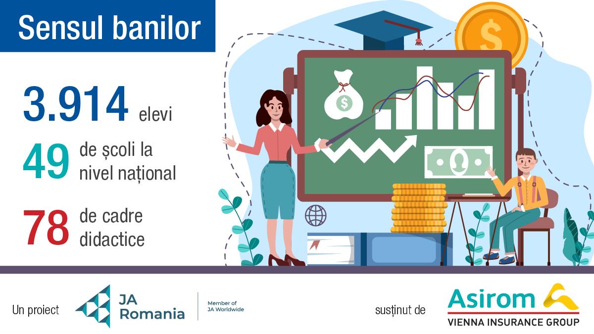 Asirom este alaturi de Junior Achievement Romania inca o editie a proiectului Sensul Banilor, prin care peste 3.900 de elevi de gimnaziu din 49 de scoli, inclusiv din zone defavorizate, au avut ocazia sa exploreze lumea finantelor si sa isi dezvolte competente esentiale pentru viitor.